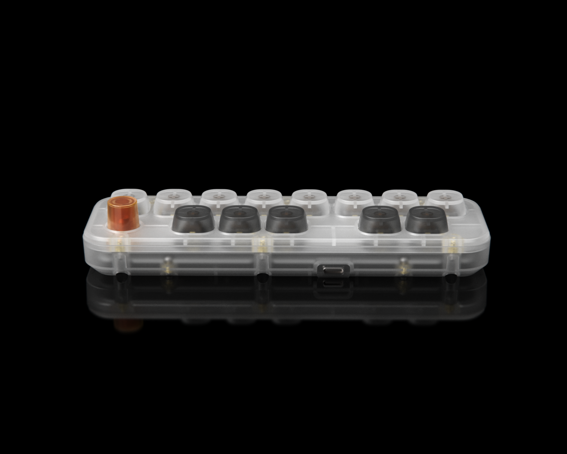 A compact MIDI input device based on mechanical keyboard architecture, designed for use with desktop music notation software.
