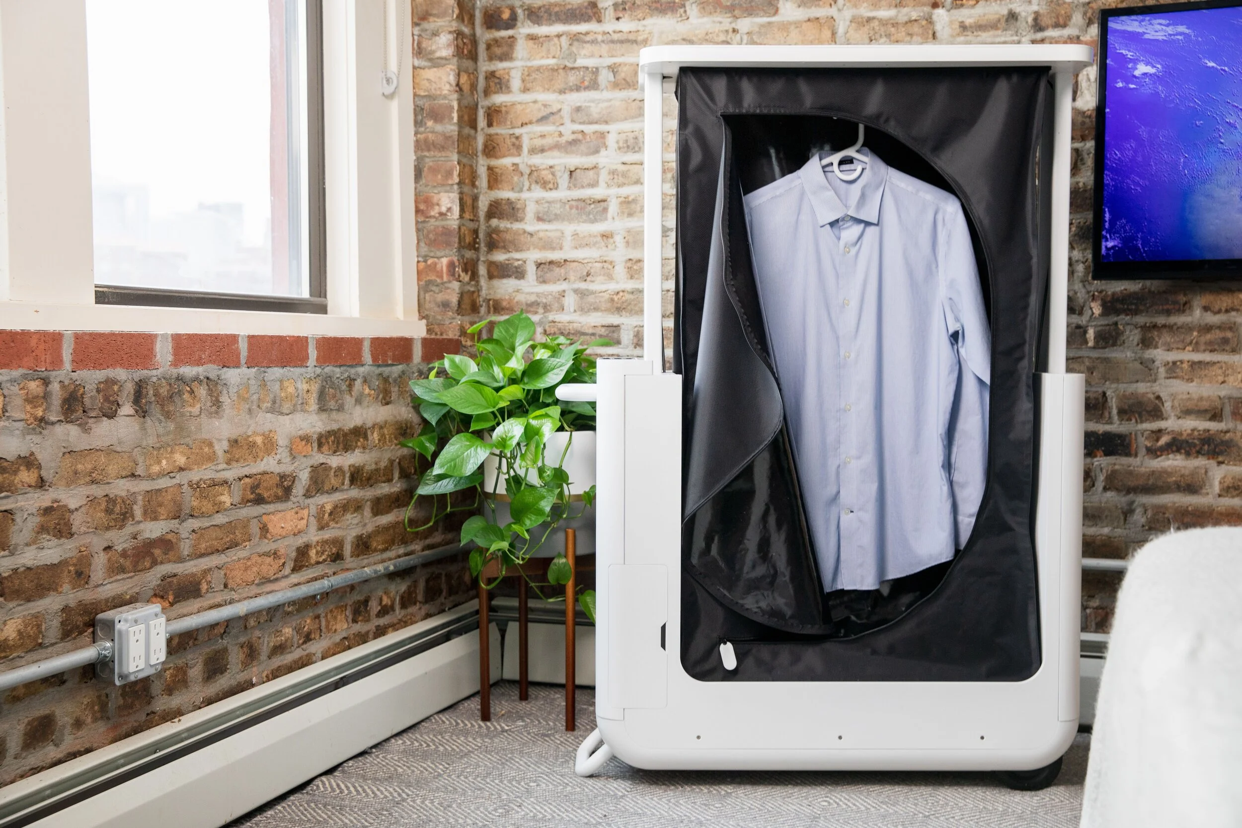 Pristeem is a novel solution for quickly un-wrinkling and deodorizing clothing using steam and specially-formulated chemicals. I worked on the industrial and mechanical design of the first version of this product, a portable and collapsible device for use at home.